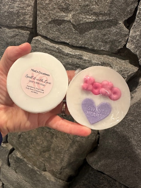 Spell it with Love is a Goat's milk soap and has notes of Sweet Citrus bouquet, Peaches, Cherries, Berries, and an undercurrent of musk. These bars are approximately 5 oz in size.